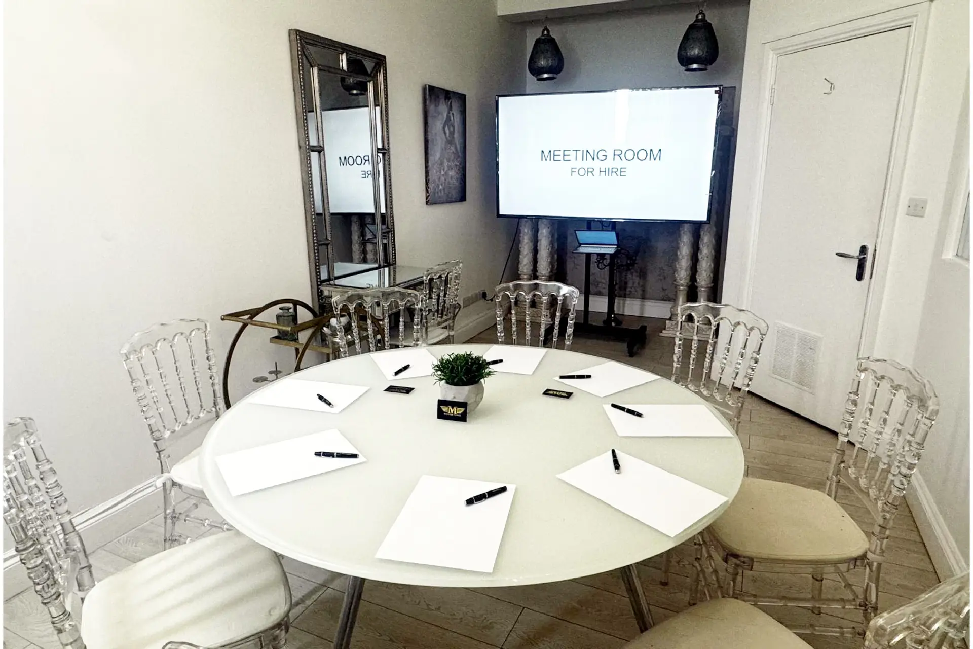 Our professional room hire options include three meeting spaces for 5, 10, or 15 people, with the Grand Ballroom and Mayfair Lounge also available as high-capacity conference venues for larger corporate events.